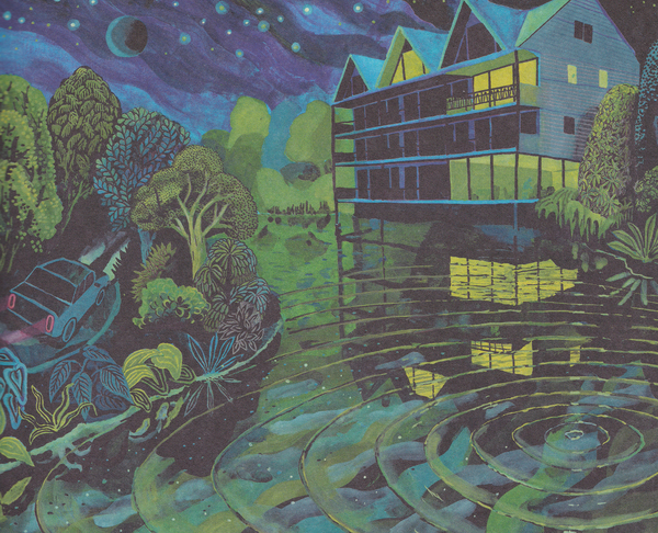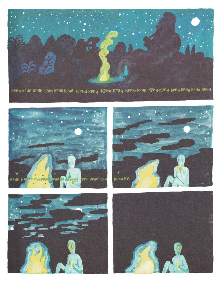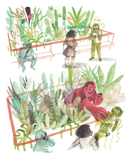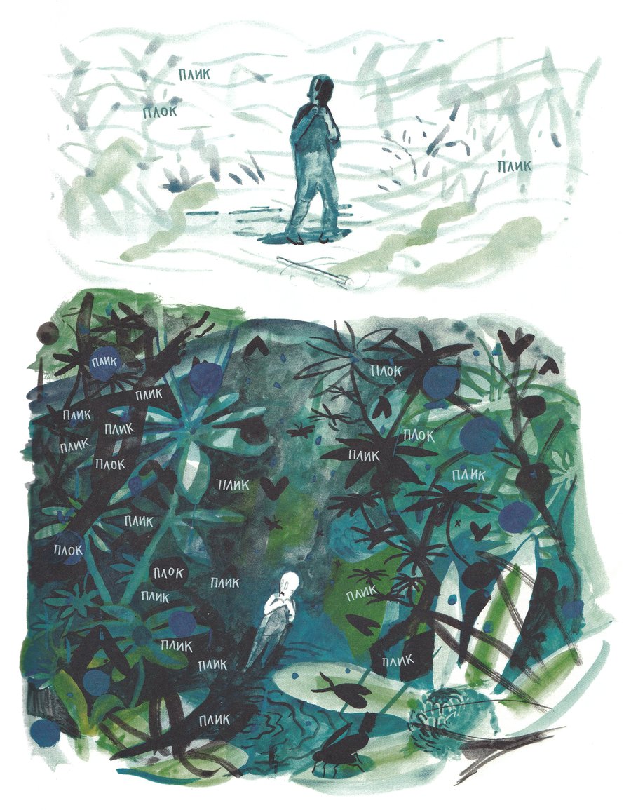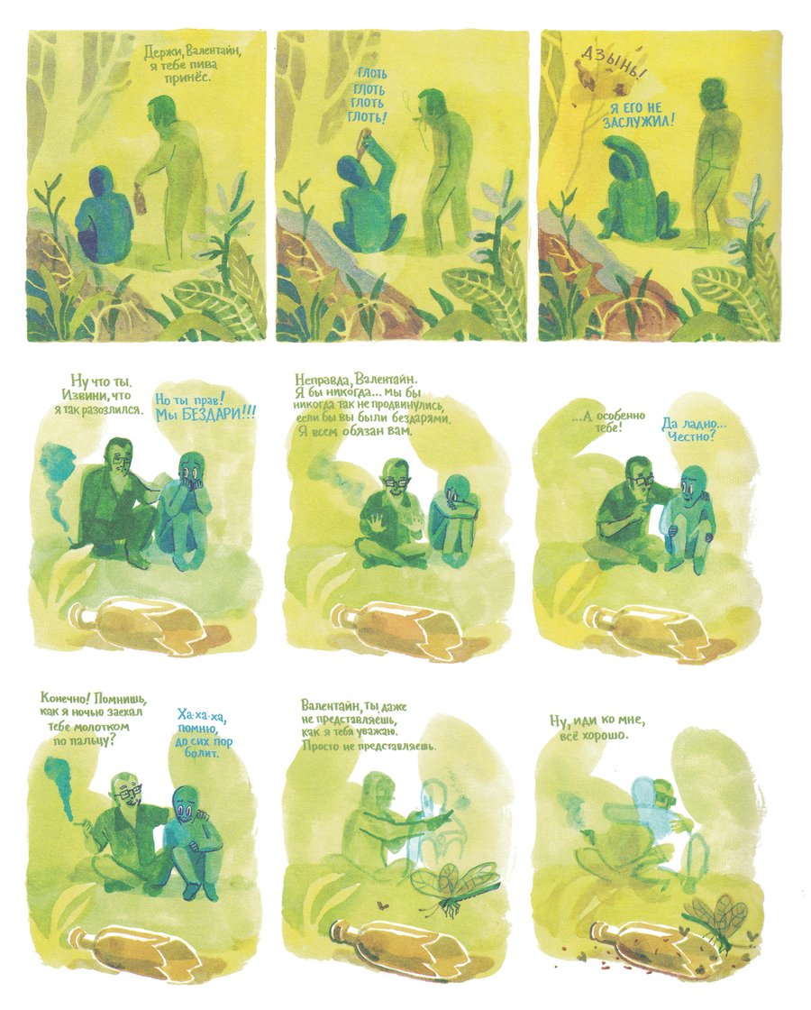 Одна из ярких полос комикса с изображением природы напоминает о картинах Анри Руссо.