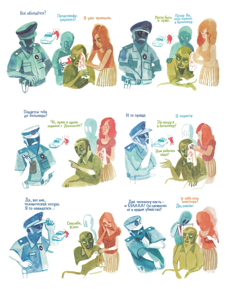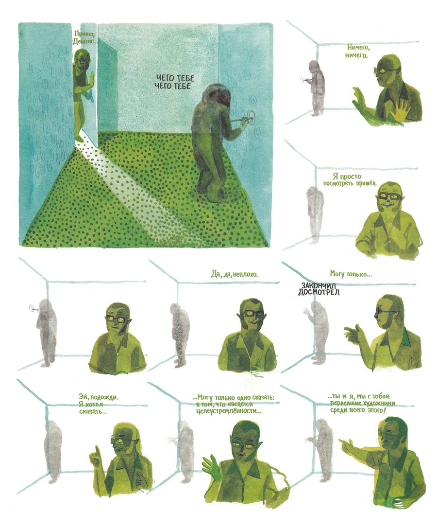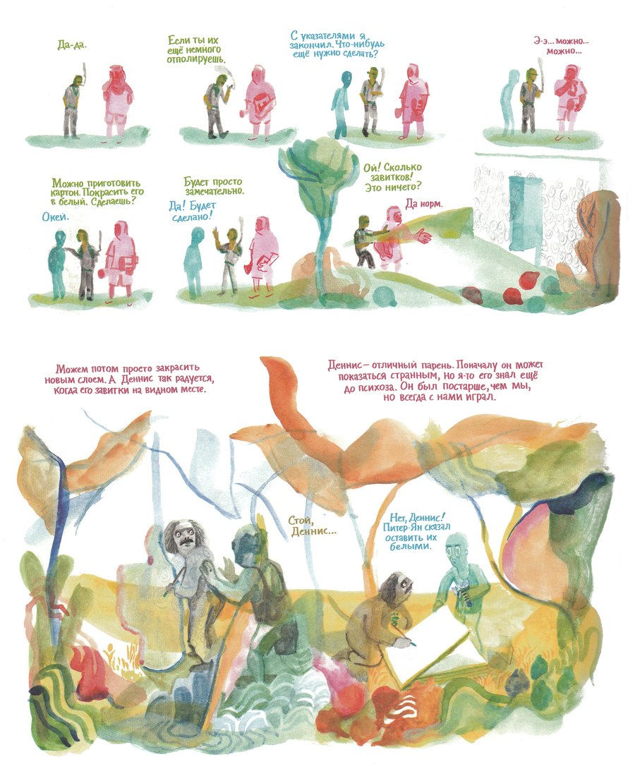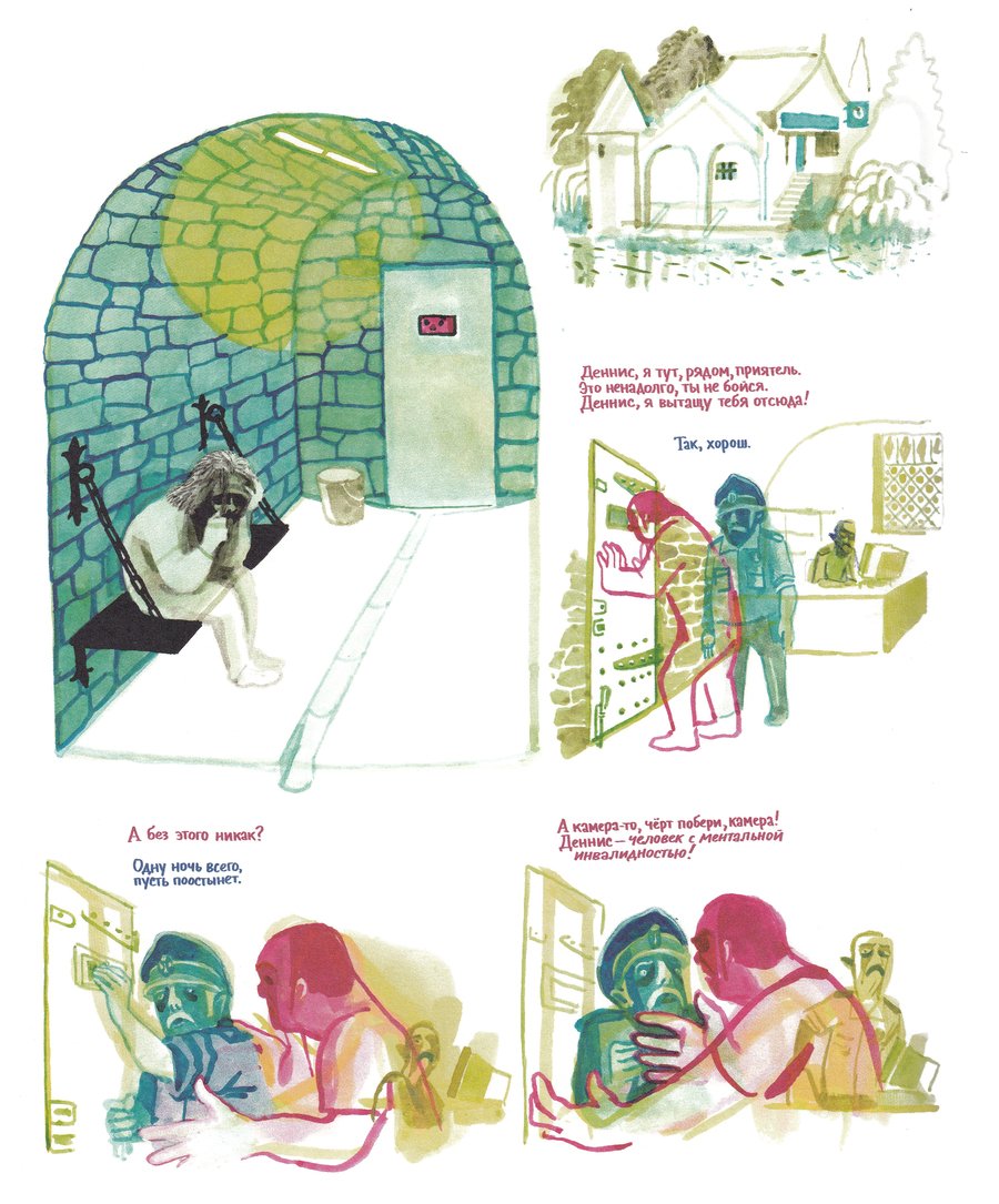 Он разрисовывает завитками даже чертеж, после чего Питер-Ян предлагает Кристофу «поговорить о Деннисе», и специально для него сооружают комнату, которую он может разрисовать полностью. В этот момент у Денниса случается эмоциональный кризис. Диалог Питер-Яна с Деннисом обращает на себя внимание тем, что занимает два разворота. После этого разговора Деннис нападает на Питер-Яна. Денниса забирают в полицию.