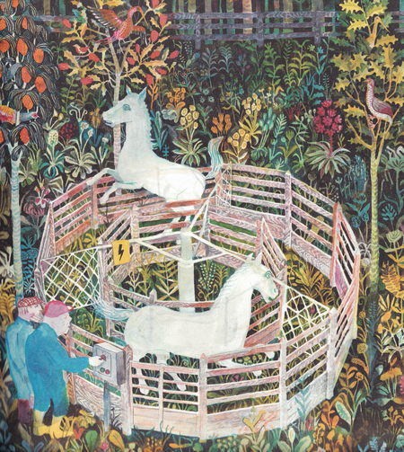 Еще одна полоса похожа на гобелены позднего Средневековья с единорогами. Также в комиксе прослеживаются отсылки к пейзажам Ван Гога.