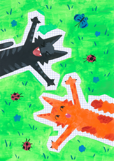 Летняя мечта — это серия иллюстраций для дизайна календаря, отражающая летний сезон. Иллюстрации должны напоминать рисунки школьника, фантазирующего о грядущем лете. На них забавные котята отдыхают и веселятся, как и полагается делать летом.
