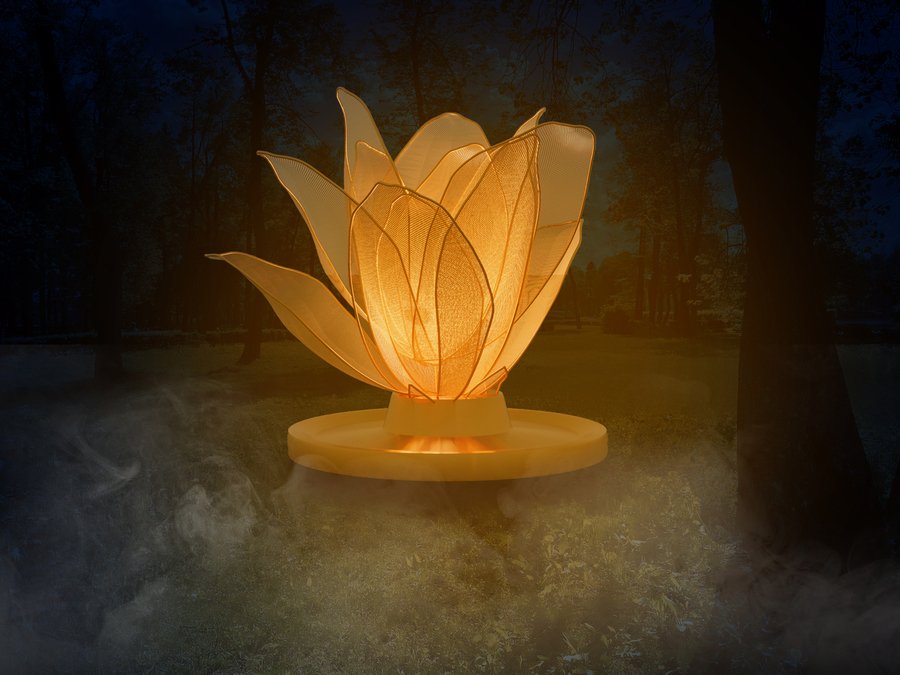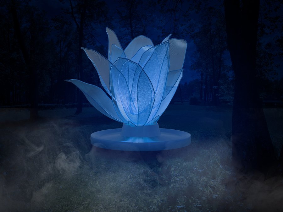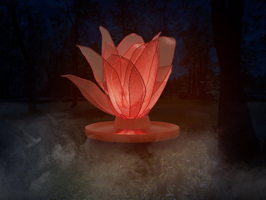 The visitor approaches the flower, asks his question, and at that point the volunteer starts the mechanism, and then the flower lights up in a certain color, giving the answer. So the object becomes an interactive game with unknowns, where everyone can get their «sign» from the flower.