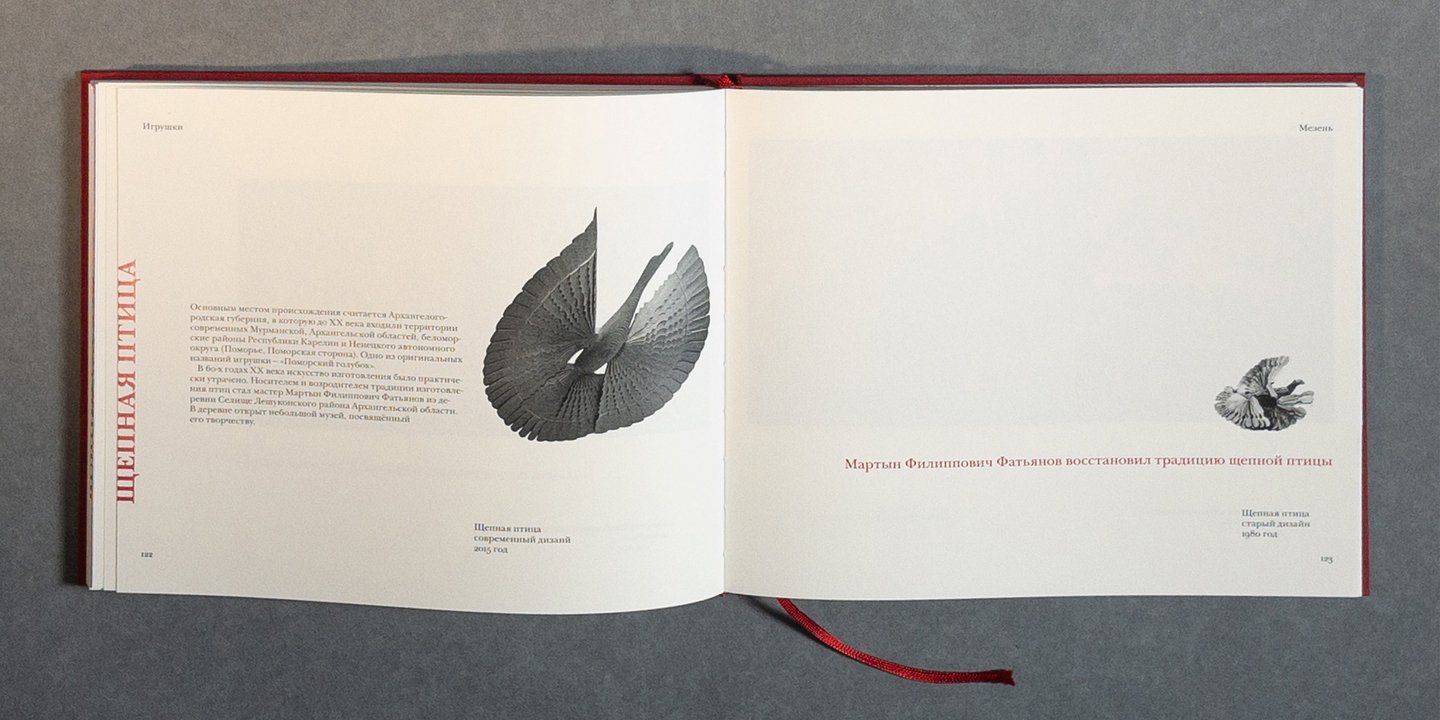 MEZEN is a river located in the Arkhangel region, along which the waters of the White Sea have been inhabited for centuries. This territory is rich in unique people ' s creativity. The concept was to make a book in the form of a family photo album on folk art in the region, to study the culture of pommers and to pass on something home to me, because all my relatives on my mother’s line are from there.