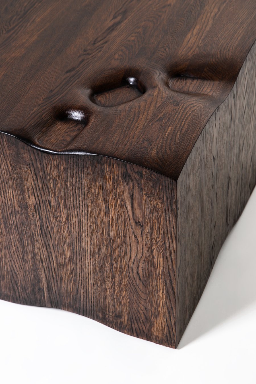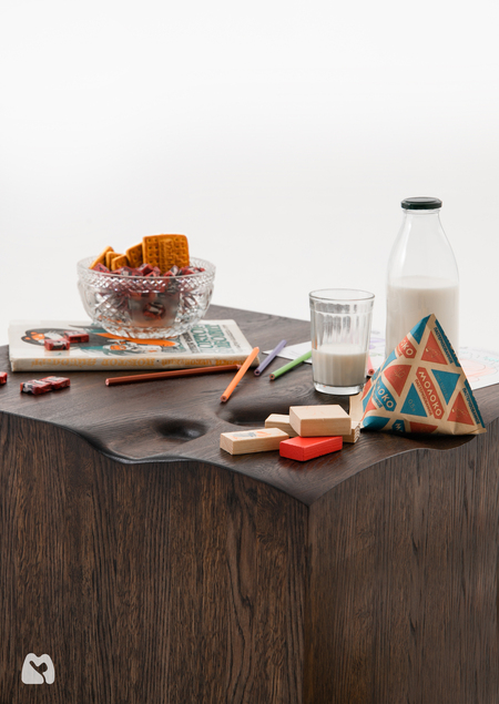 Поверхность была проработана «брашингом». Поэтому на ощупь столик по всей его поверхности очень текстурный. Это также нетривиальная отсылка к ребристости на оригинальной сладости.