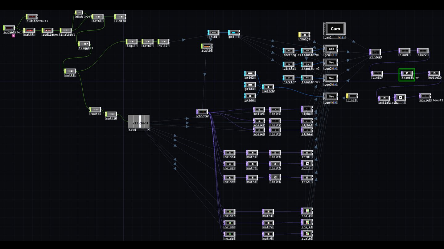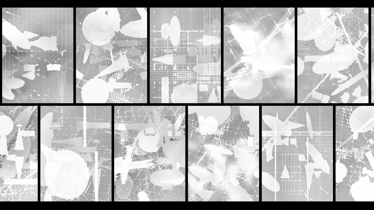 As a second-level illustration, audio-reactive compositions were generated in Touchdesigner. Adaptive graphics, changing to specific sounds, have become illustrations for the musical works listed in the book, which are key to methamodern.