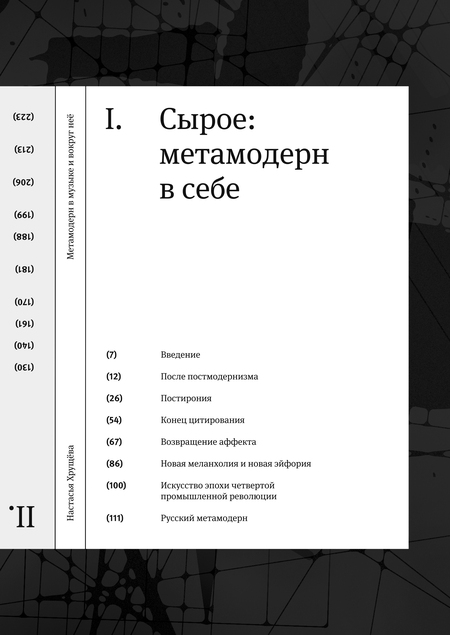 A two-part edition of the monograph by the Russian composer Nastasia Khrushevoy on global and private processes of transition to methamoderne, describing «new simplicity» and music as an art that began a new state of culture.