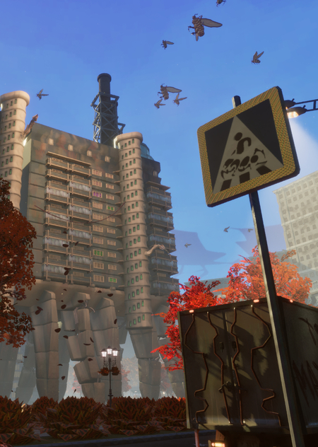 Альтернативная Москва будущего, полного катастроф, где здания, сохранив монументальность, стали высоко-мобильными. Район Беговой тянется от выхода из обновленного МЦД до БЦ «Монарх», проходя через центральные улицы, отсылающие к московскому культурному наследию, перемежающиеся заблудшими зданиями-жуками под светом фонарей, освещающих дорогу. Заметить области зданий, нуждающихся в реставрации, игрок может по светящимся кислотным отметинам, они выступают главным ориентиром.
