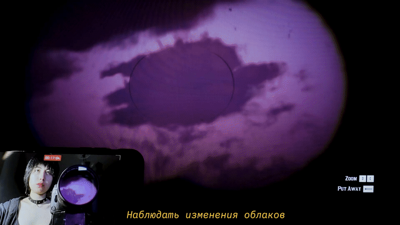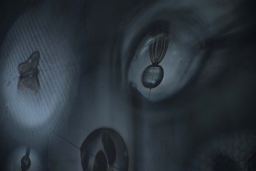 Так, именно из экспериментов художниц с различными цифровыми медиа родился объединяющий мотив экспозиции — размышление о природе наблюдения, режимах видения и фиксации. Плотно вплетенное в повседневные практики, от пристального взгляда на себя самого, до попытки запечатлеть загадочное и необычное, лежащее в основе любых научных и творческих изысканий, наблюдение становится одновременно и предметом рефлексии и самоценным художественным жестом.