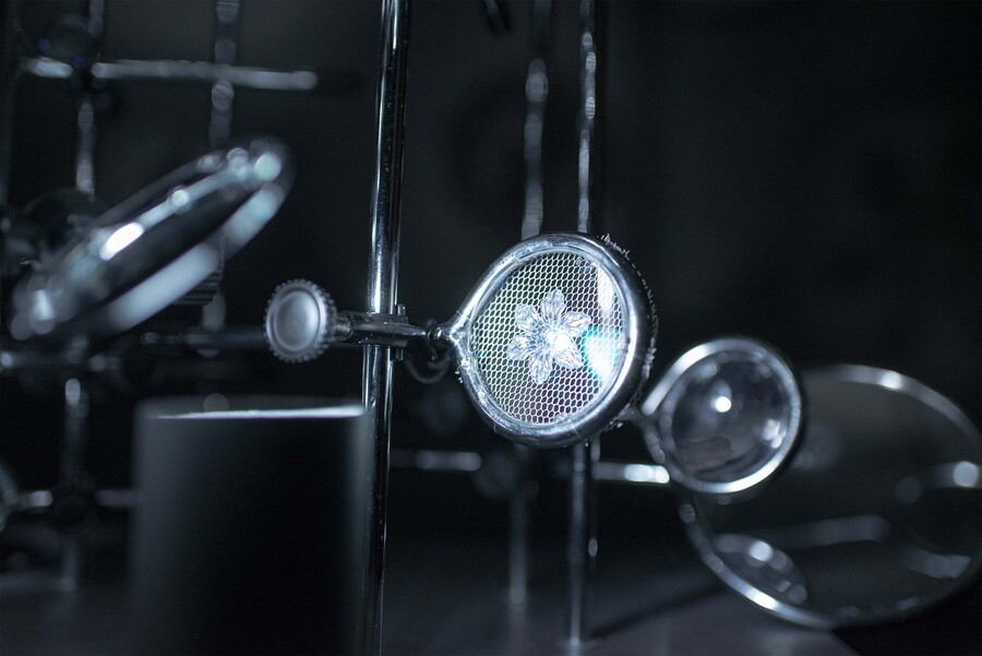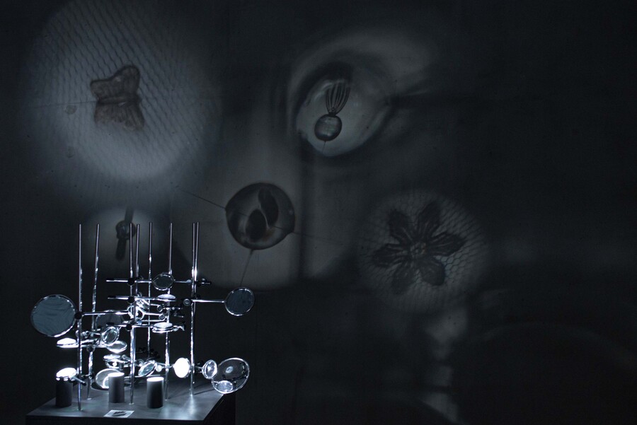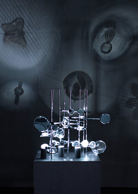 Смена оптики, как в буквальном, так и в метафорическом смысле, позволяет обнаружить художественное в обыденном. В коллаборации с ученым-оптиком художницы сконструировали собственное уникальное устройство, в котором скомбинированы различные зеркала, линзы и проекции. Метафора «призмы восприятия» овеществляется в инсталляции в форме оптических и световых приборов.