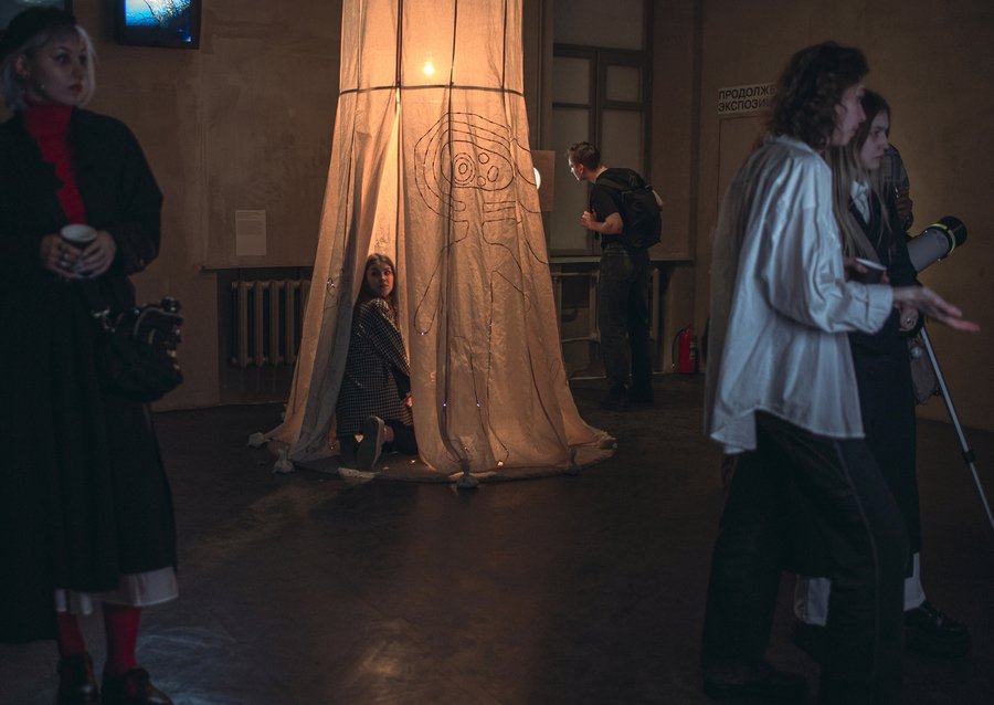 «Свидетель» — мультимедийная инсталляция о поиске контакта с внеземными формами жизни. Шатер инсталляции — убежище человека, посвятившего жизнь ожиданию коммуникации с космосом. Зрители могут разделить опыт героя и изучить документацию его встреч с неизвестным в полевом дневнике. Аудиокомпозиция радиосигналов, которая звучит в шатре, рассказывает о стремлении выйти на связь с кем-то, кого никогда не видел, но очень ждешь, круговороте ожиданий и разочарований. Может быть, со временем надежда отыскать неизвестное ослабевает, но появляется осознание, что процесс поиска и есть результат.