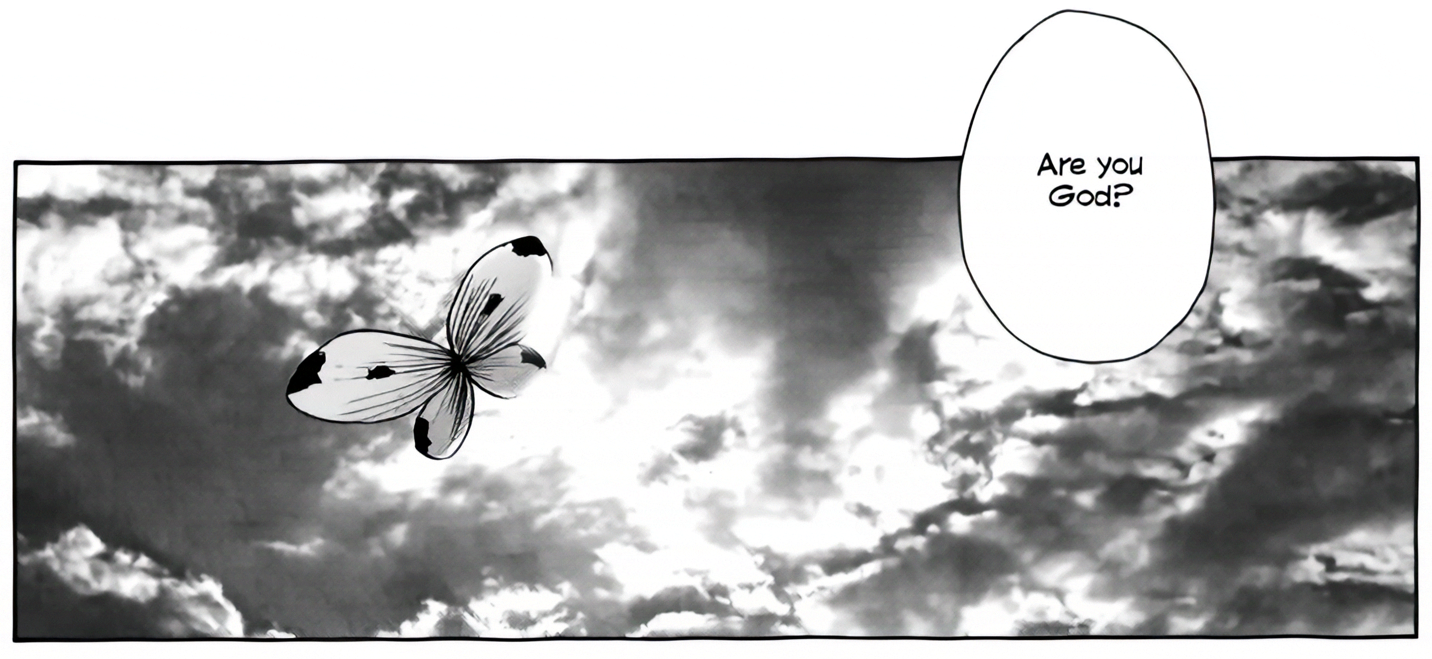 В другом эпизоде отец Ариэ Кимуры складывает оригами, визуально напоминающее журавля или традиционные фигуры бабочек матё: [яп. 女蝶] и отё: [яп. 男蝶]. Оригами в произведении можно рассматривать как символ попытки упорядочить хаос внутреннего мира, зафиксировать и сохранить фрагменты прошлого, которые иначе ускользают из сознания. Подобно тому, как из простого листа бумаги складывается сложная форма, персонажи пытаются собрать воедино разрозненные воспоминания и понять причины своих травм или ошибок. Кроме того, бабочка может служить символом эфемерности человеческой жизни, что отсылает читателя к Ариэ Кимуре, которая непробудно «спит» последние десятилетие, будто находясь на границе жизни и смерти, настоящего и фальшивого. Бабочка приобретает новое значение — иллюзии и переходного состояния между реальностью и сном, что напрямую резонирует с нелинейным, сновидческим повествованием манги, где границы между настоящим, прошлым и фантазией размыты, а бабочки становятся индикаторами «нереальности» происходящего.