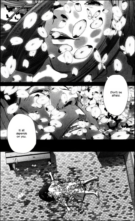 Символика бабочки в манге многозначна и включает в себя мотивы трансформации, эфемерности и бренности бытия. Бабочка становится метафорой цикличности времени и повторяющейся травмы, которая преследует персонажей, а её появление часто сигнализирует о приближении катастрофы или грядущего «апокалипсиса».