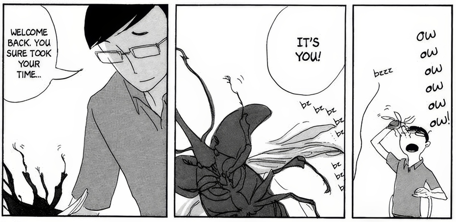 Сиро, антропоморфное насекомое, результат неудачного опыта // Харуко Итикава. Фрагменты из манги «Песни насекомых». 2009