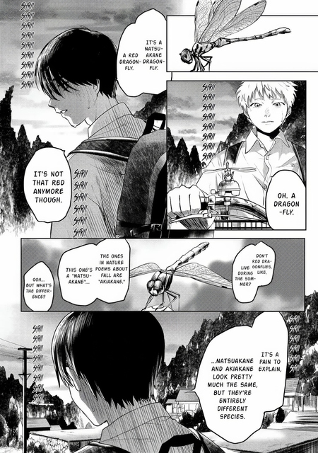 В сцене, где герои обсуждают различие между похожими видами стрекоз — «natsu-akane» и «akiakane», — возникает прямая аллюзия на ситуацию с Хикару: внешне всё кажется прежним, но внутренне — это уже другое существо.