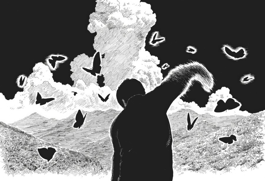 Через противостояние человека и исполинского роя насекомых раскрывается глубокий экзистенциальный конфликт, связанный с утратой традиционной субъектности и подчинением человеческой идентичности более древним, биологически устойчивым формам жизни. Манга не только визуально, но и концептуально воплощает тревожные вопросы о границах человеческого «я» и его месте в мире, где биологическое и социальное переплетаются в сложном, порой угрожающем симбиозе.