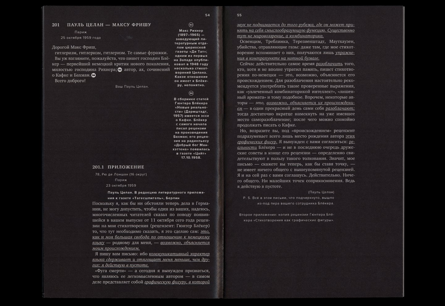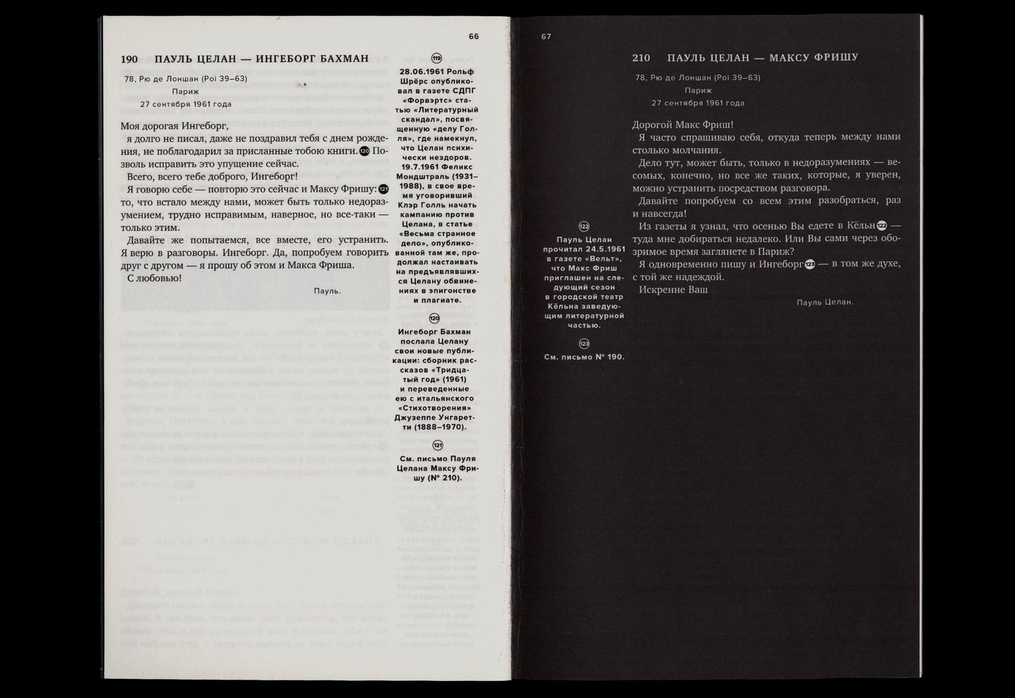 Оно дополнено комментариями, в которых документируются письма и контакты (телефонные разговоры, разговоры с третьими лицами), архивные документы и биографическая информация о поэтах.