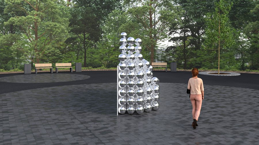 - Зеркальные сферы из полированный нержавеющей стали - Защитный лак против царапин - Композитная панель (алюминий + пластик)