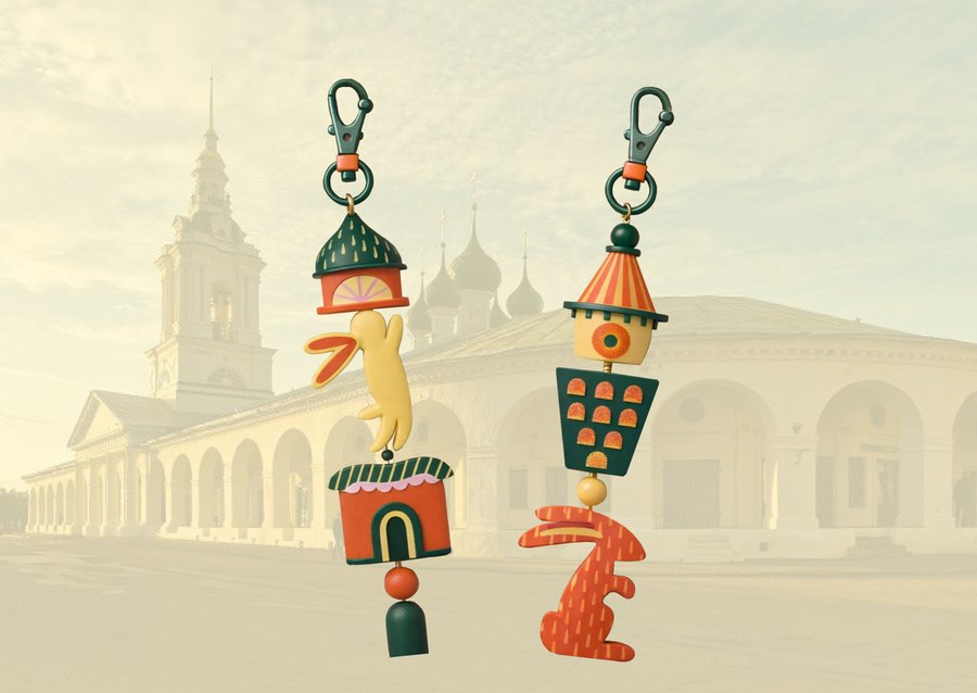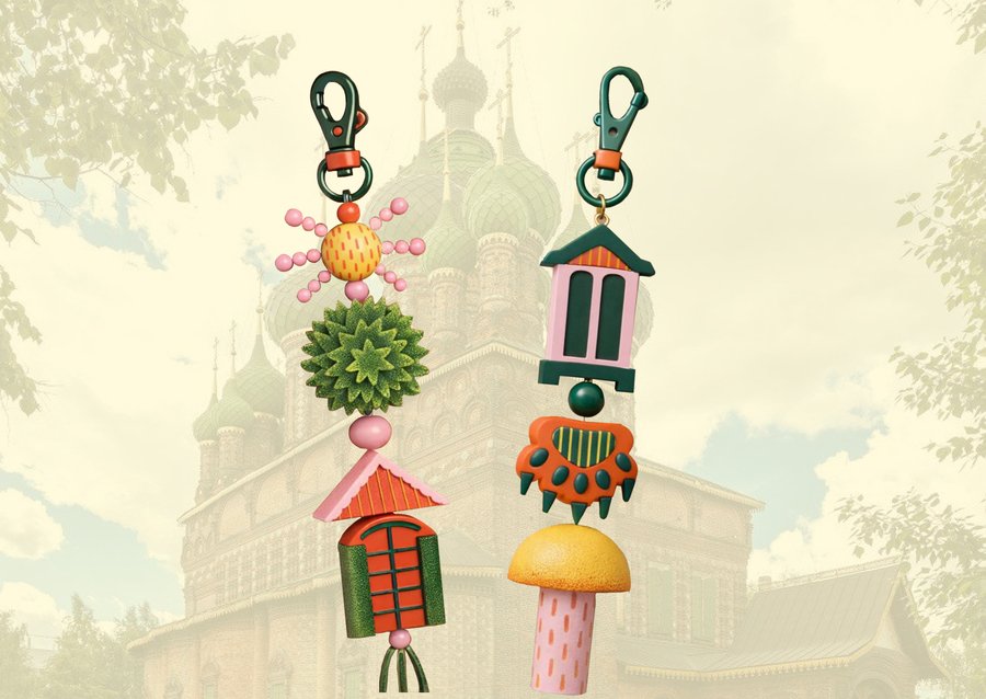 Проект исследует характер трех городов Золотого кольца через их архитектурные коды. Абстрактные сувениры брелоки-обвесы главных достопримечательностей Ярославля, Костромы и Суздаля, а также открытки, становятся визуальной метафорой, раскрывающей атмосферу каждого места, позволяя носить с собой не просто изображение, а ощущение города