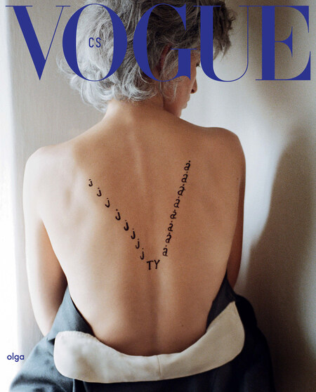 На первой обложке чехословацкого Vogue, вдохновленной последней первой леди страны Ольгой Гавловой, можно увидеть спину модели Каролины Курковой, расписанную фрагментом из стихотворения мужа Ольги — последнего главы Чехословакии и первого президента Чехии Вацлава Гавела. А спину модель прикрывает пальто из секонд-хенда.