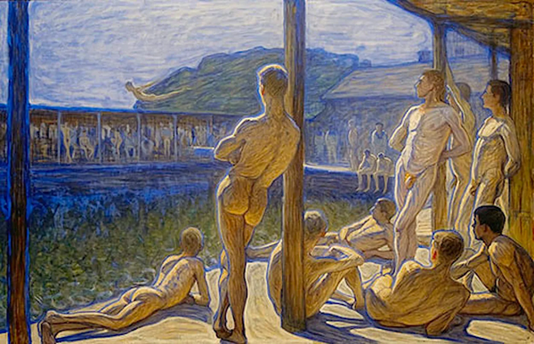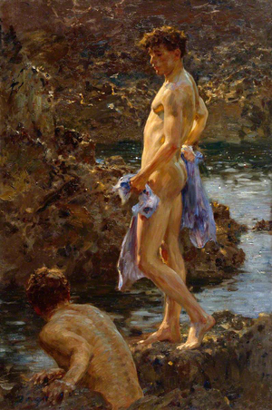 В конце XIX — начале XX века сцены мужского купания на открытом воздухе стали самостоятельным художественным жанром, отражающим сдвиг в восприятии телесности и мужественности. Купание, ранее нейтральное или гигиеническое действие, превращается в повод для исследования чувственности, гомоэротизма, уязвимости и свободы.