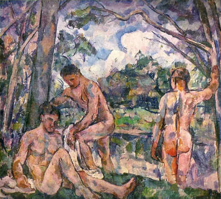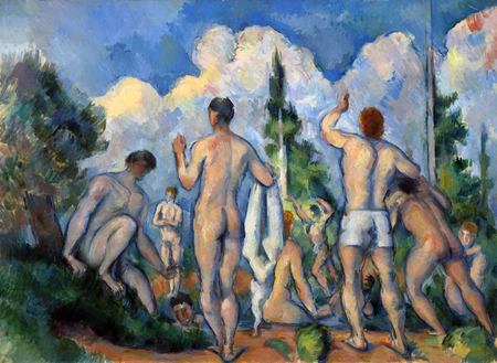 Слева: Eugène Fredrik Jansson, Flottans Badhus (The Navy Bath House), 1907 Справа: Paul Cézanne, Baigneurs (Bathers), 1890