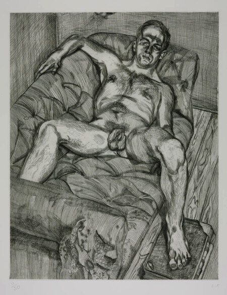 Слева: Lucian Freud, Naked on a bed, 1987 Справа: Lucian Freud, Sunny Morning–Eight Legs, 1997