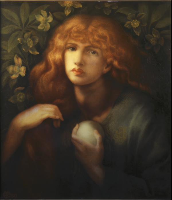 2. Прозерпина держит гранат, символ греха и плена. Свет из узкого окна делит пространство на мир живых и подземный мир. В её взгляде тоска и принятие неизбежности. Россетти делает этот мифический образ личным, превращая богиню в воплощение любви, утраты и внутренней скорби.