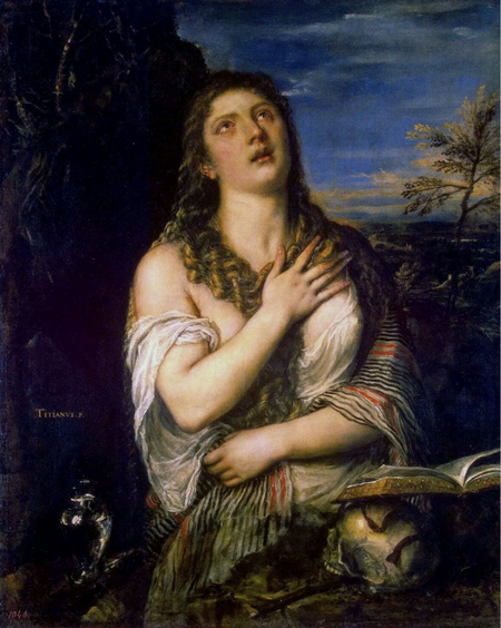1. Тициана «Мария Магдалина» (ок. 1533), 2. Энтони Фредерик Сэндис «Мария Магдалина» (1860).