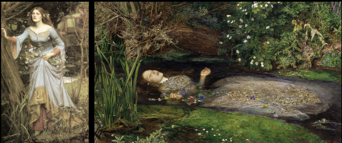 Картины «Офелии» Джона Уильяма Уотерхауса: 1. (1889), 2. (1894) 3. (1910) 4. Джон Эверетт Милле, «Офелия», (1852)