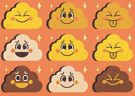 Промт для Recraft.ai: A seamless repeating pattern on a white background. The pattern features: cute cartoon corgis and dachshunds, dog bones, and expressive cartoon poop emojis with unique emotions — one smiling joyfully, one winking cheekily, one sleeping, and one giggling. Color palette: 0B1426, BF7A26, F2C8A2, D93814. Clean vector illustration, professional graphic design, balanced composition --ar 16:9 --tile