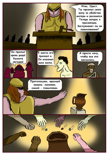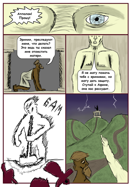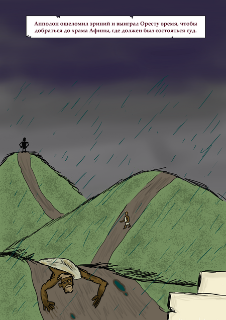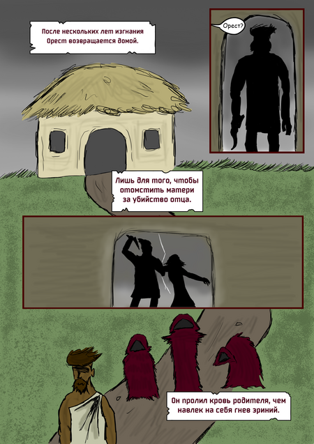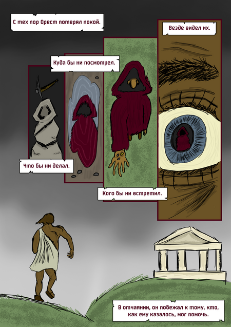 За основу для комикса был взят миф о преследовании Ореста эриниями.