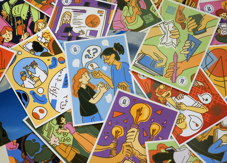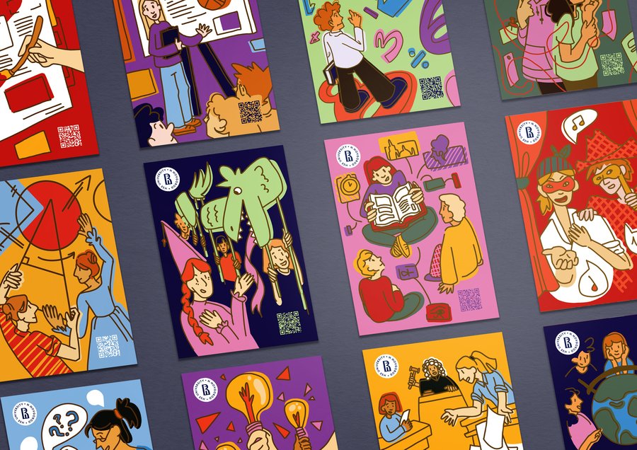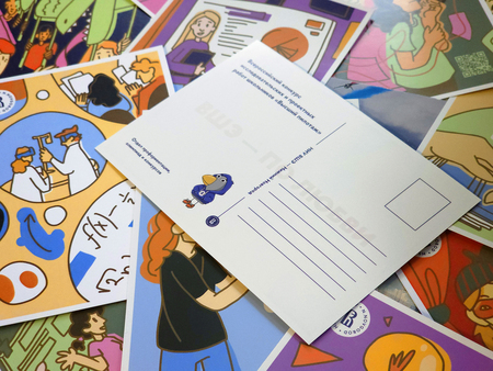 Сами открытки являлись не только приятным сувениром, но и вспомогательным материалом для организаторов благодаря qr-кодам со ссылками на лендинги соответствующих кружков и олимпиад.