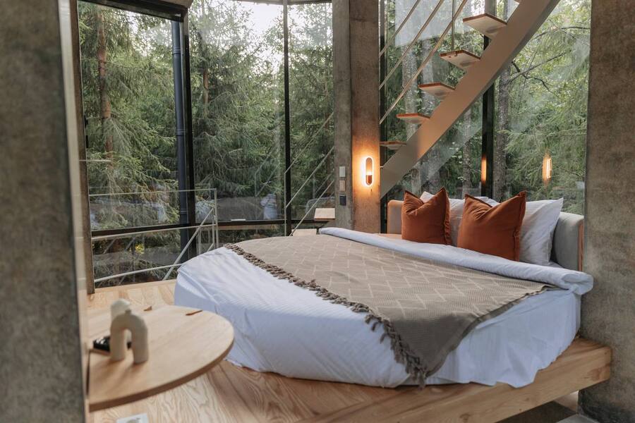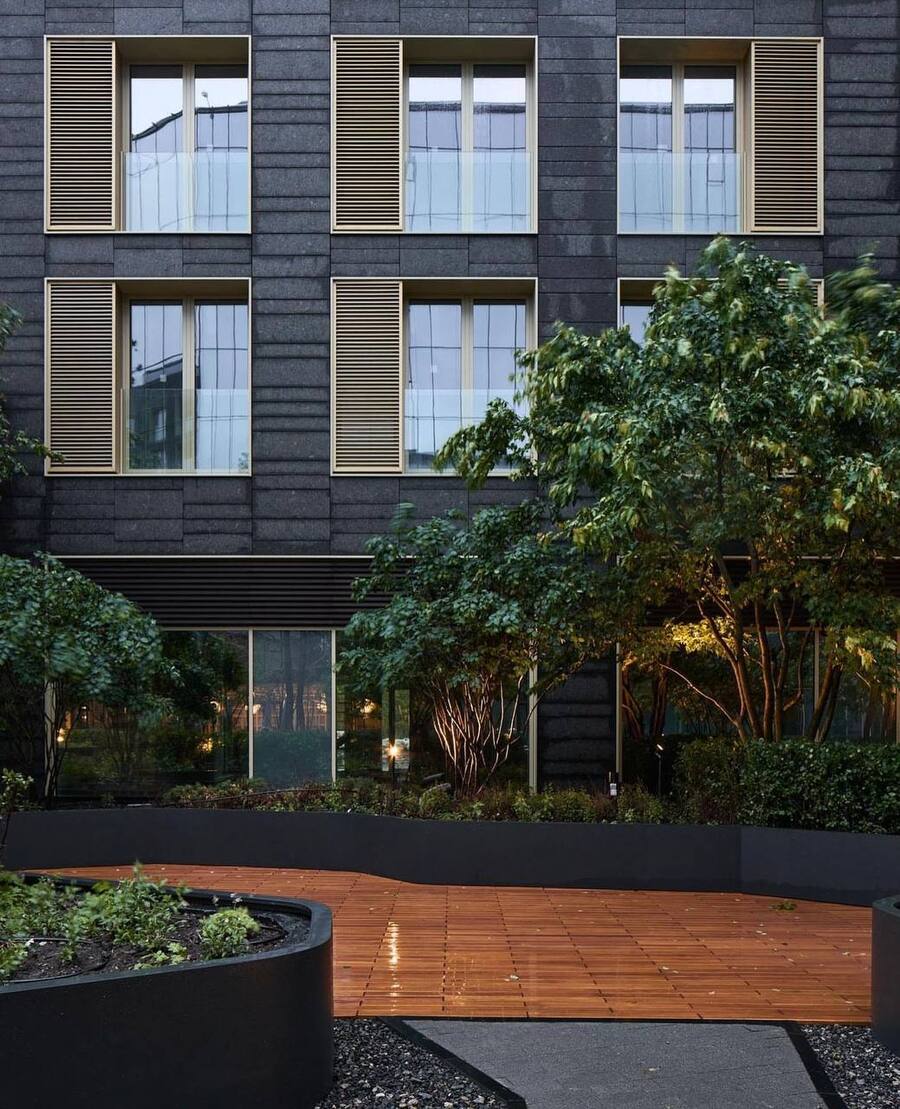 Озеленение пространства может осуществляться не только с помощью искусственных насаждений, но и непосредственно внедряясь в уже состоявшуюся среду. Так особой популярностью начали пользоваться отели и глэмпинги в лесных зонах. Благодаря такой организации пространства происходит бескомпромиссный контакт с природой и её постоянное присутствие на протяжении всего пребывания человека в такой локации.
