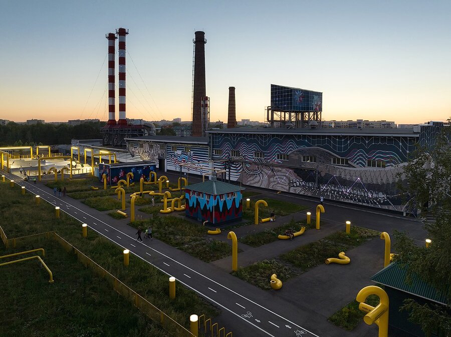 В вопросе создания общественных пространств важную роль играет ревитализация. Именно благодаря ей в Альметьевске (город в Республике Татарстан), появилось интересное прогулочное пространство совмещённое со скейт-парком на территории Альметьевской теплостанции № 2.