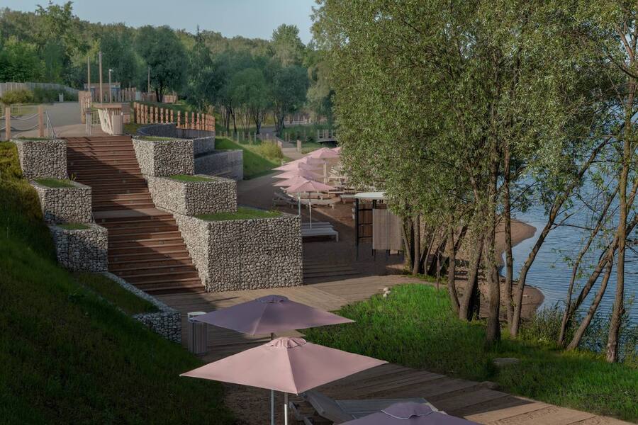 Городской пляж в Московской области (д. Раздоры), проект бюро Basis, 2022 г.