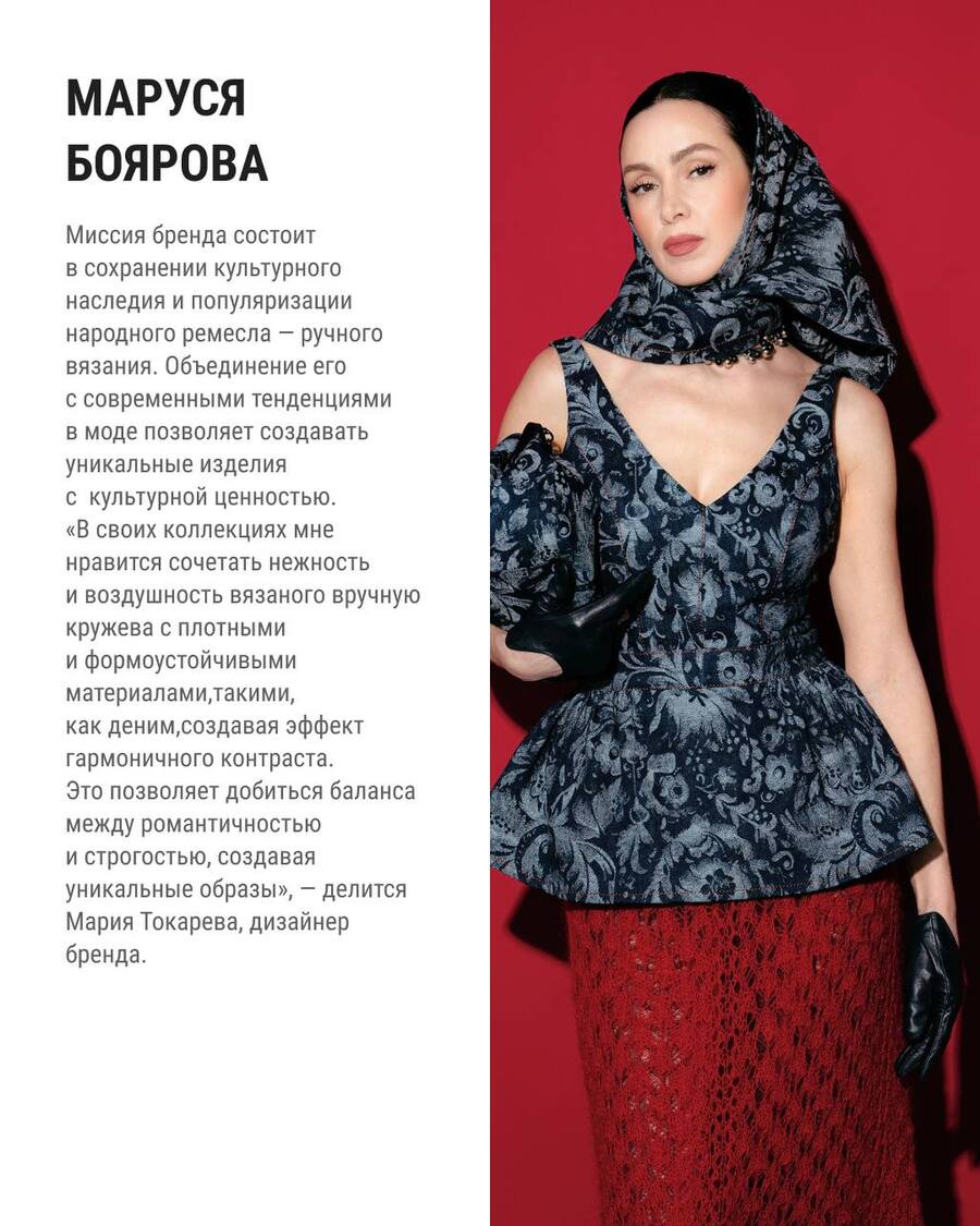 — В противовес тренду к глобализации возник совершенно другой тренд на местное, ручное, уникальное, аутентичное производство. Плюс уже несколько лет идет период сложной для России самоидентификации, когда мы хотим понять, кто мы, что мы, что такое наша идентичность, — говорит приглашенный гость показа, дизайнер Алена Ахмадуллина, чьи работы уже много лет базируются на русской этнике.