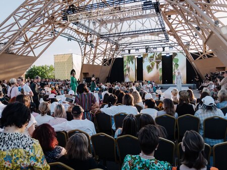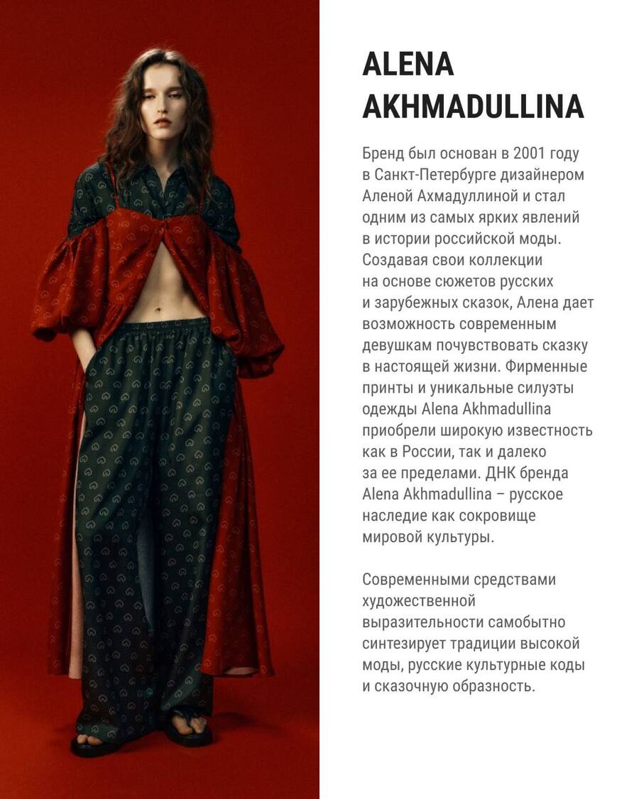 Весенне-летняя коллекция бренда Alena Akhmadullina, завершившая событие, была вдохновлена историей Суздаля и растениями средней полосы России, что нашло отражение в цветовой гамме. Природные цвета — голубой с зеленым — соседствует со светлыми оттенками, вдохновленными белокаменной архитектурой, и вневременными черным и бежевым.