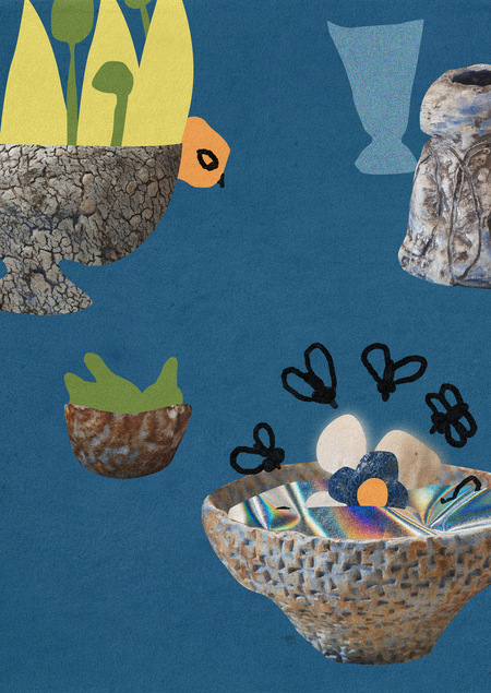 Её основой были шесть случайных слов, коллажный натюрморт из векторных рисунков, покадровой анимации и керамики Марины Акиловой.