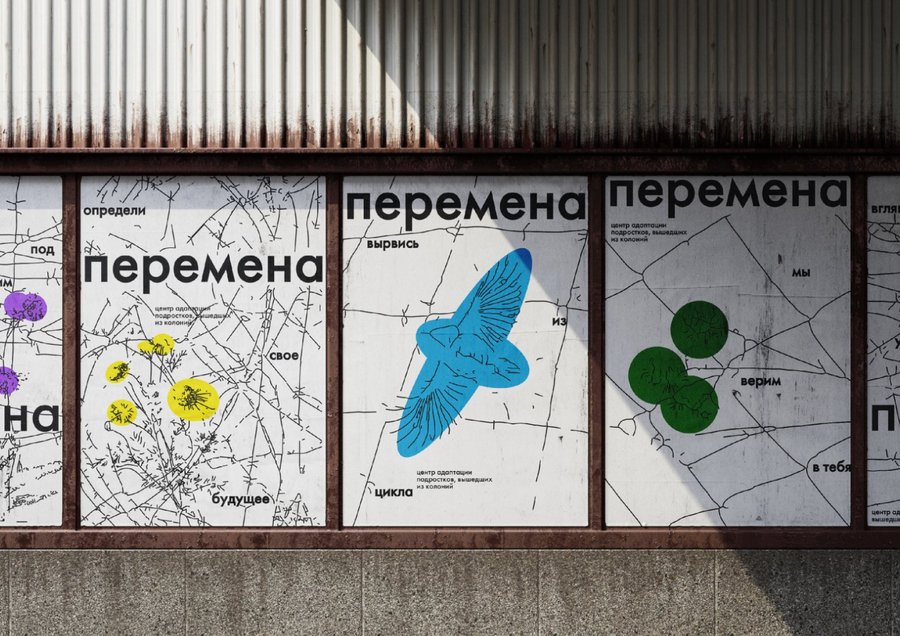 Prompt: A poster for a rehabilitation center for adolescents after release from prison, based on an existing design (images attached). The poster should create a positive mood. The center’s name is «Peremena.» Color palette: Hex (F2F2F2), Hex (F9ED2E), Hex (000000)