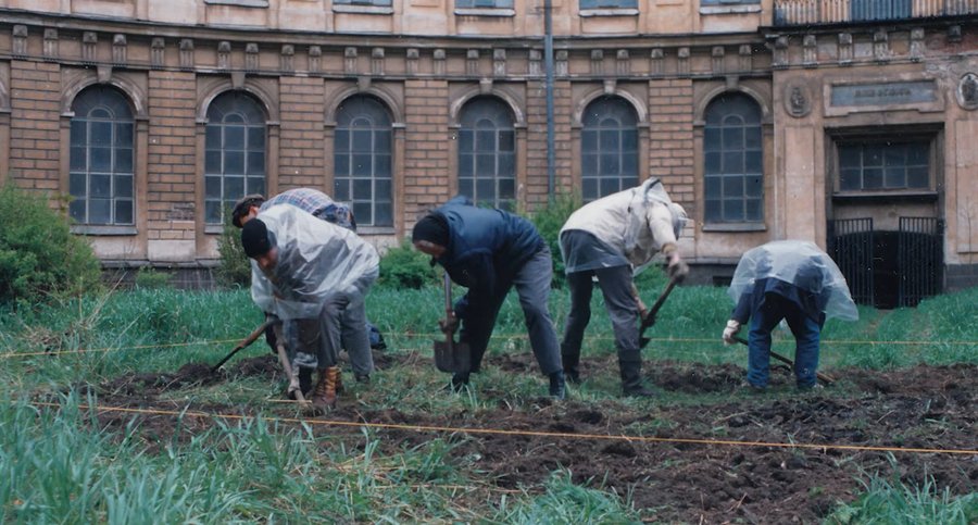 На фото слева: Объединение «Тут-и-Там», акция «Огород Малевича», 1992 [3]
