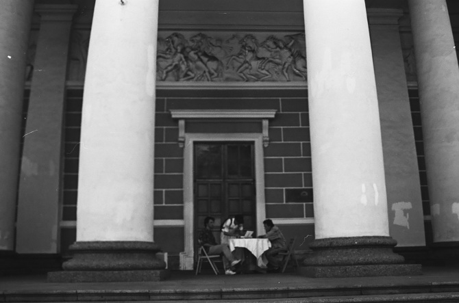 Монтаж выставки на Дворцовом мосту, 1990 [12]