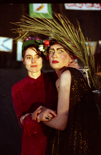 Иван Мовсесян на монтаже выставки, 1990 [12] // Катрин Беккер и Владислав Мамышев-Монро на выставке, 1990 [12]