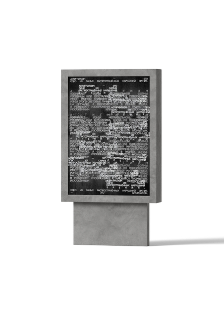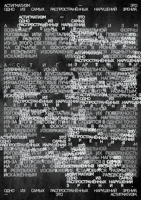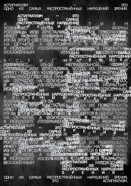 В плакатах я использую визуальные приёмы — размытие, смещение, искажения, — которые олицетворяют отсутствие единой фокусной точки и постоянное колебание чёткости.