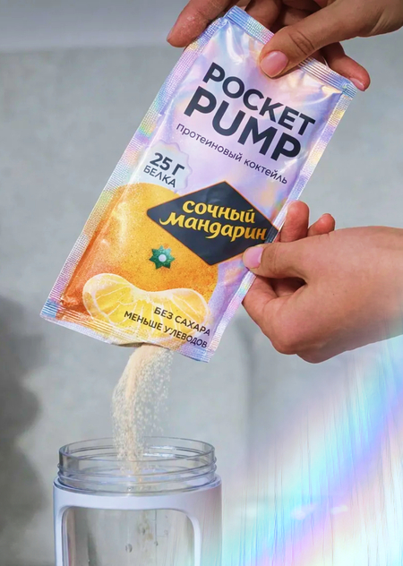 POCKET PUMP — это набор порционных протеиновых саше в компактной коробке, созданный для активного ритма жизни.