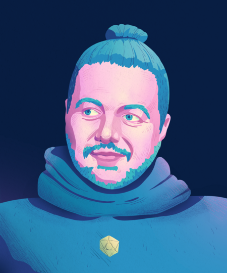 Серия портретов создателей и осуществителей — мастера игры, художницу и постоянных игроков — шоу «Подземелья Чиккен Карри».