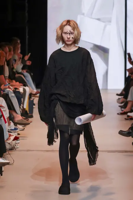 Крой и стилизация моделей были направлены на создание эффекта незавершенности, символизирующего непрерывный процесс творчества. Для усиления этой идеи модели выходили на подиум с эскизами и другими инструментами художников. В коллекции использовались разнообразные материалы — от плотного денима до технологичных плащевых и полупрозрачных тканей.