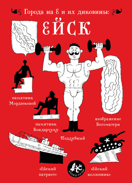 Для него художник Шабуров сообразно своему методу расширения контекста придумал множество сувениров. В частности, серию открыток «Города на Е и их диковины». Чтобы живущие в провинции люди оторвались от своего пупа и ощутили себя частью большого мира, где тоже свои диковины есть.