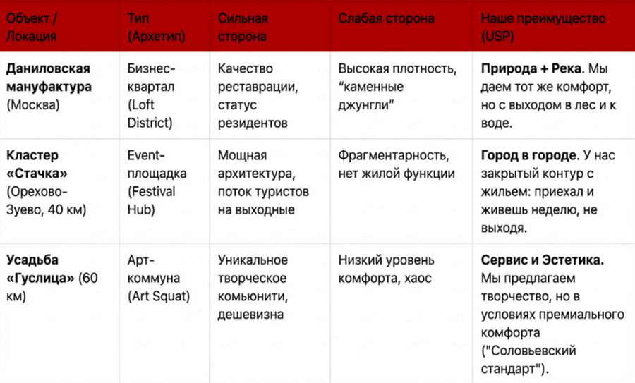 Вывод для Киржача: Мы забираем аудиторию «Гуслицы», которая выросла и хочет комфорта. Нам нужен не «сквот», а «бутик-отель с мастерскими».