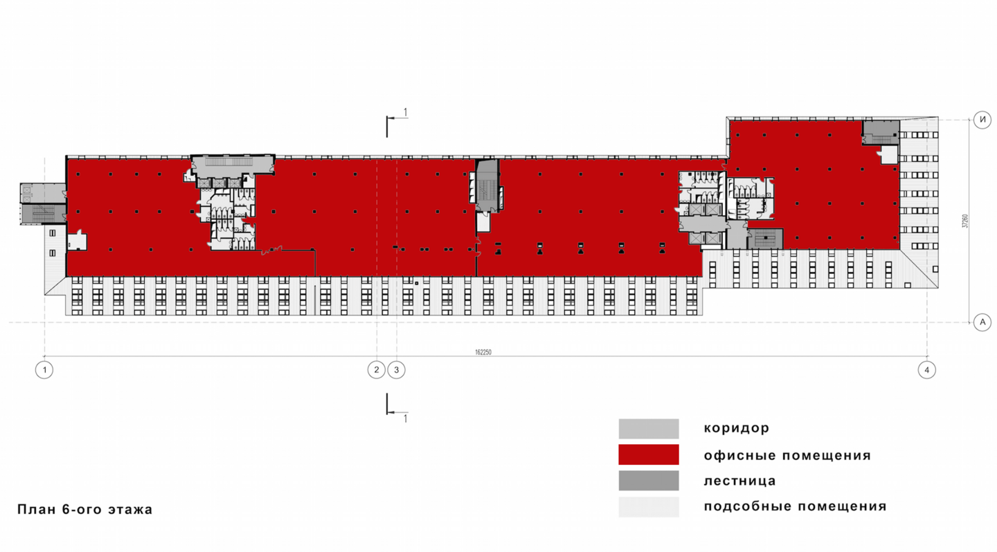 Объемно-планировочное решение Внутренняя структура отличается геометрической чистотой. Отсутствие капитальных перегородок создает единое пространство типа open space. Высота потолков позволяет организовать вертикальное зонирование.