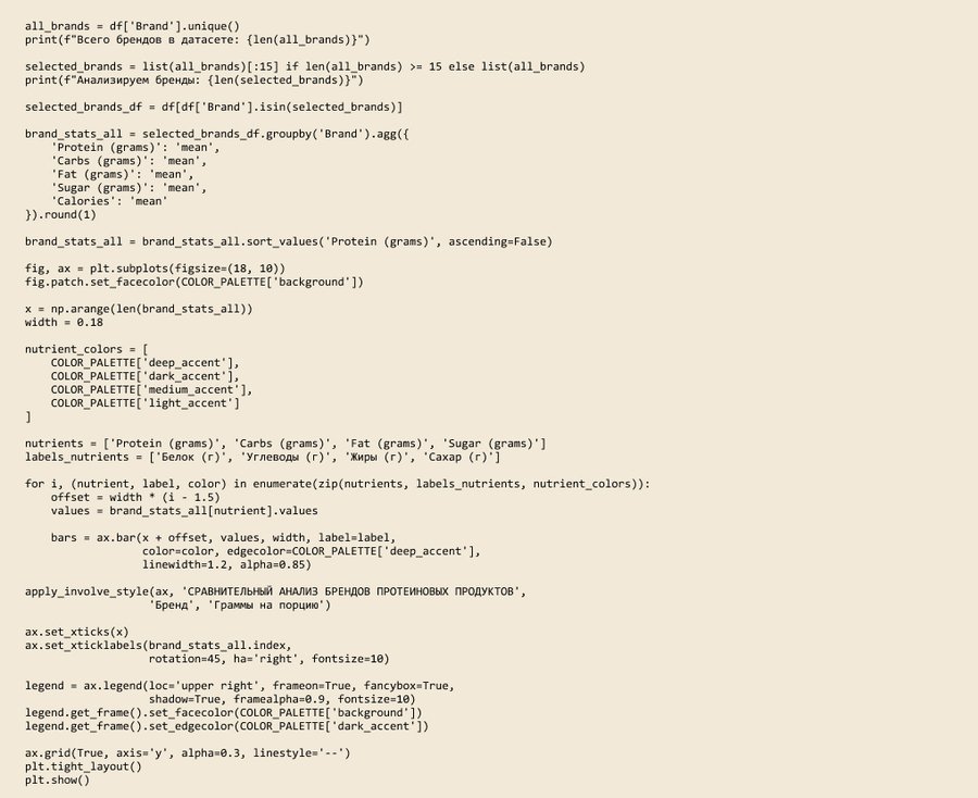 Данные визуализации являются важным и ключевым инструментом для принятия решений в области разработки протеиновой продукции и маркетинга.