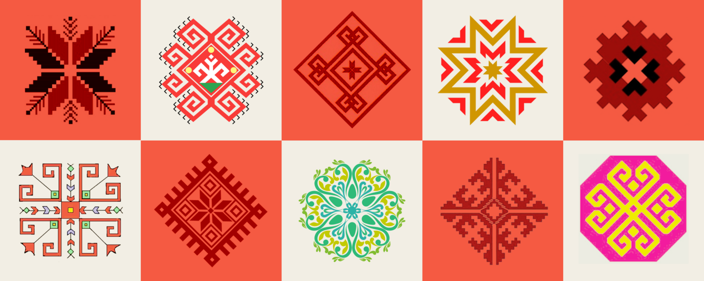 Одна из групп носителей для библиотеки — сувенирная продукция. Основная идея — переосмысление традиционных узоров разных народов Поволжья и создание современного визуального кода с сохранением символики и внутреннего смысла.